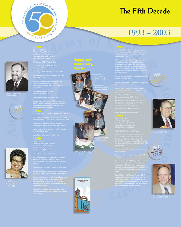 The Academy continues to make progress. 1990 found the Furman Initiative on Public Education and Psychiatry began under the leadership of Owen Lewis and Harold Koplewitz.