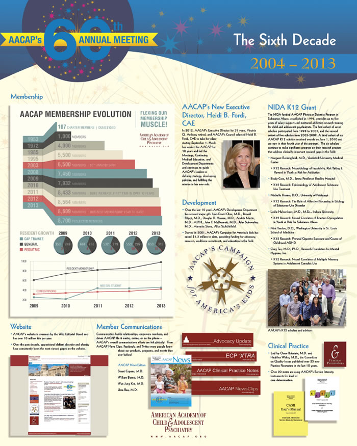In 2008 as there are increases in work groups and Task Forces at AACAP: Juvenile Justice,Research,Work Force Issues. In 2002 The Academy begins The Campaign for Americas Kids and U.S News World Report, awards AACAP web page the best one in Child Mental Health.