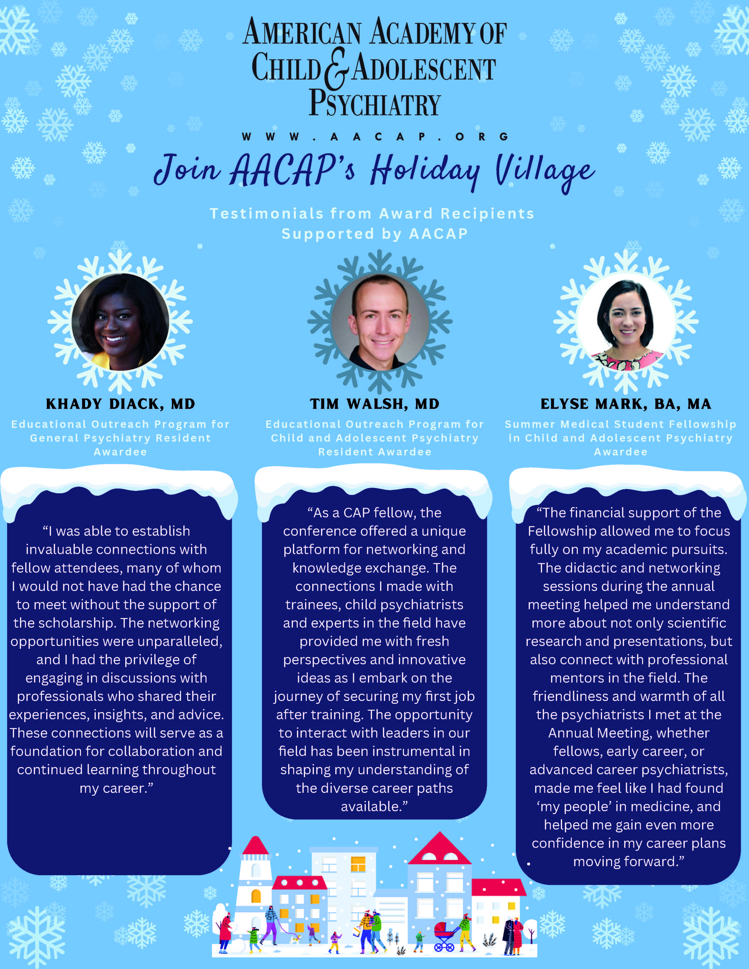 AACAP's mission is to promote the healthy development of children, adolescents, and families through research, training, prevention, comprehensive diagnosis and treatment and to meet the professional needs of child and adolescent psychiatrists throughout their careers.
